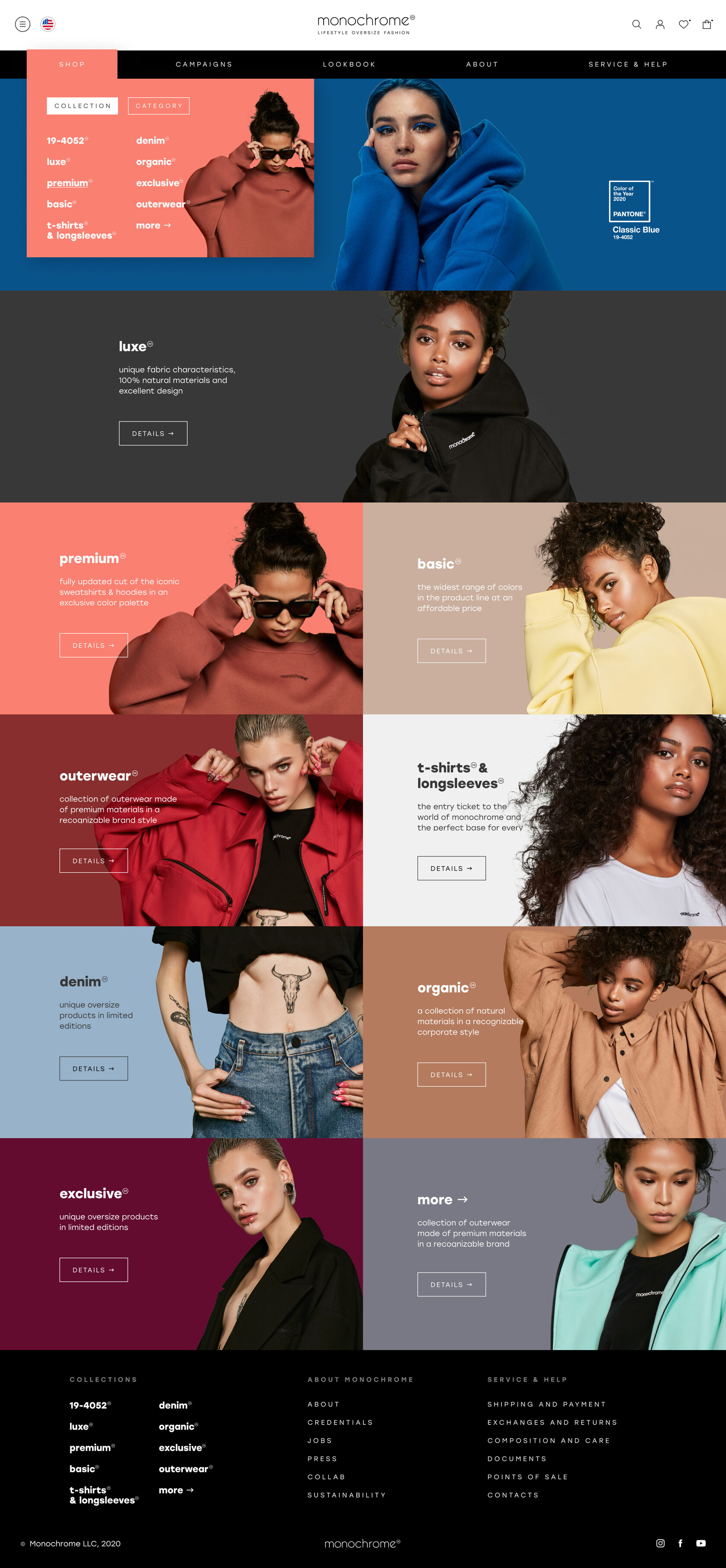 Monochrome is the first and the only lifestyle brand that actively promotes oversize fashion and uses this format as its key focus. Today Monochrome's cult sweats and hoodies have gone far beyond street fashion.